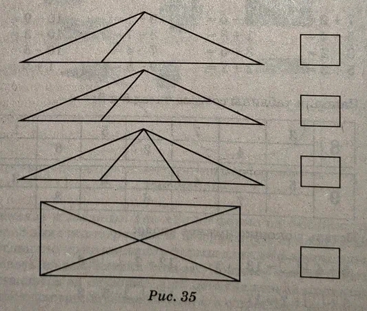 6. Посчитай, сколько треугольников в каждой фигуре (рис. 35), и запиши ответ в окошко: